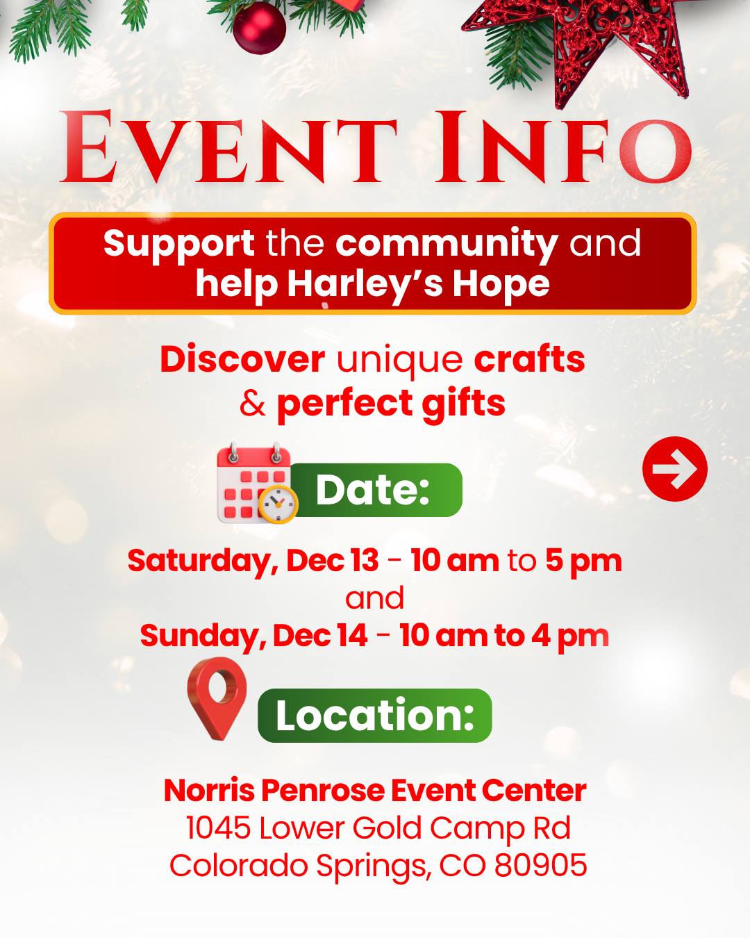 Saturday December 13: 10am - 5pm.
