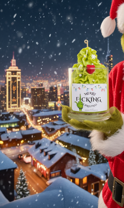 Bring a little mischievous holiday magic into your home with our Candle — the perfect blend of cozy Christmas vibes and a sprinkle of naughty fun. This bright Grinch-green candle is topped with fluffy whipped-wax “cream” in the same iconic shade, finished with cute snowflake accents and three little red hearts — because yes… his heart grew three sizes that day. 💗💗💗