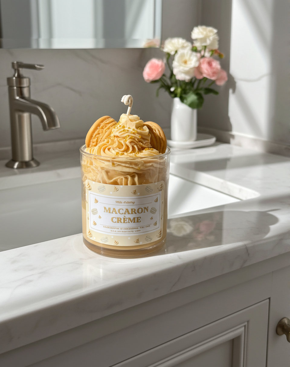 Sweet, delicate, and wonderfully Parisian — our Macaron Crème Candle captures the refined warmth of a fresh almond macaron straight from a French patisserie. Hand-poured with premium soy wax and crafted using premium fragrance oils, this candle brings a creamy, nutty, dessert-like aroma to any space.